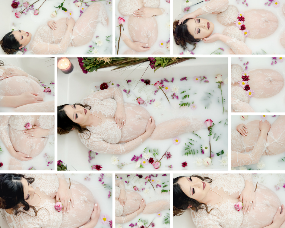 Last week I had the opportunity to photograph a beautiful mom-to-be named Jennifer. I put out a model call because I wanted to do some creative maternity sessions with my vision. Many women were interested and applied and I eventually selected two. With Jennifer, she chose to do the boudoir maternity and the milk bath. We discussed outfits, H&MU, location, and everything in between. The day finally arrived and it was perfect. Elana Emerson, a very talented H&MU artist, gave Jennifer a subtle look for her boudoir session. Natural, light, and airy was my goal for the boudoir portion of the session. Jennifer pulled it off flawlessly. She is so gorgeous with a very caontagious smile! The second part of the session was my favorite. I worked with a florist to find the perfect colors of flowers for the session. I was going for whites, deep purples, light purples and a little pink to match the colors of my brand. For Jennifer's makeup I asked Elana to do a dramatic eye with a deep purple and a plum lip, which she executed perfectly. She also put big curls throughout Jennifer's hair and loosely pinned it up, which was so beautiful.